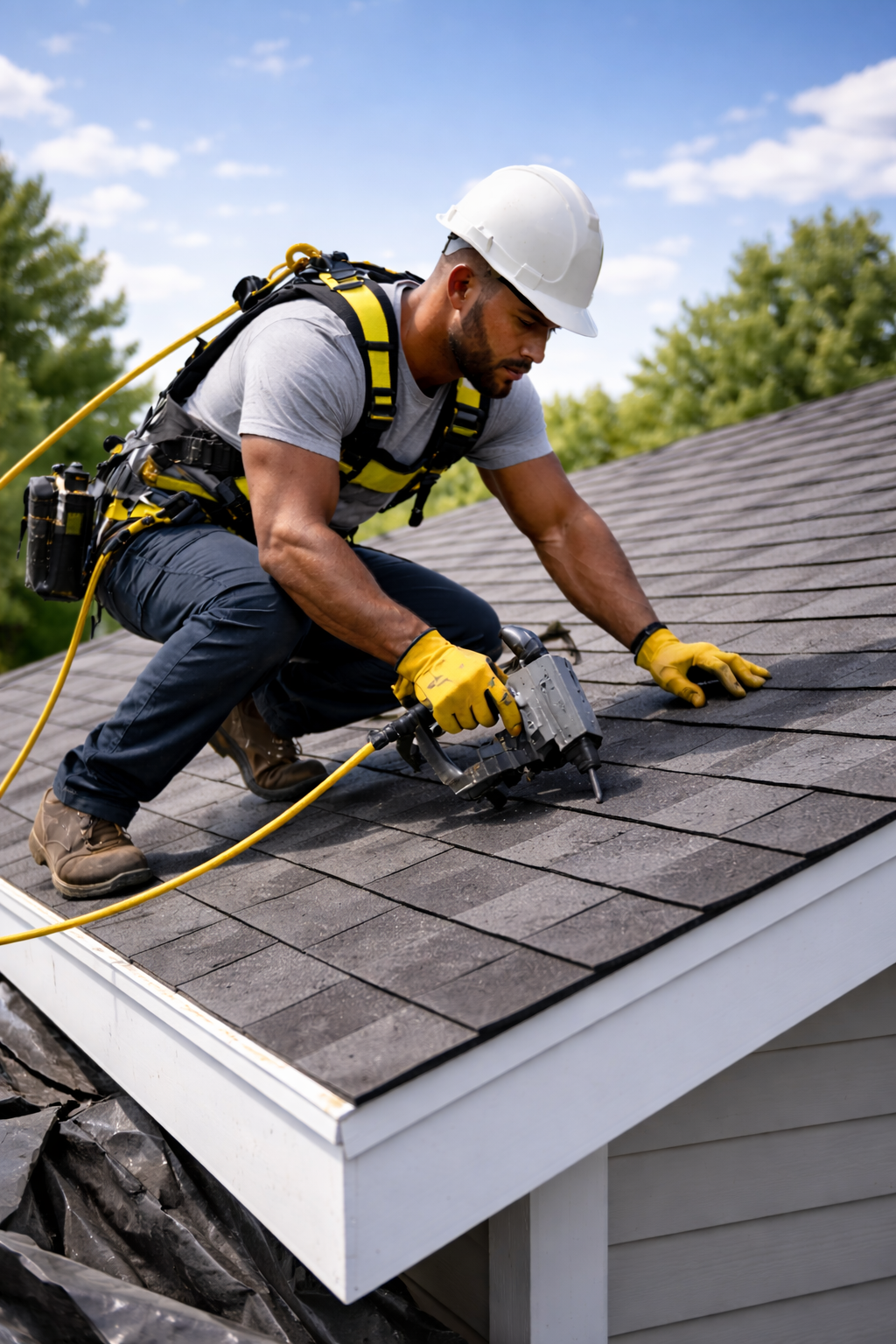 Our team handles all types of roofs, including asphalt shingles, architectural shingles, metal roofs, and commercial flat roofs.